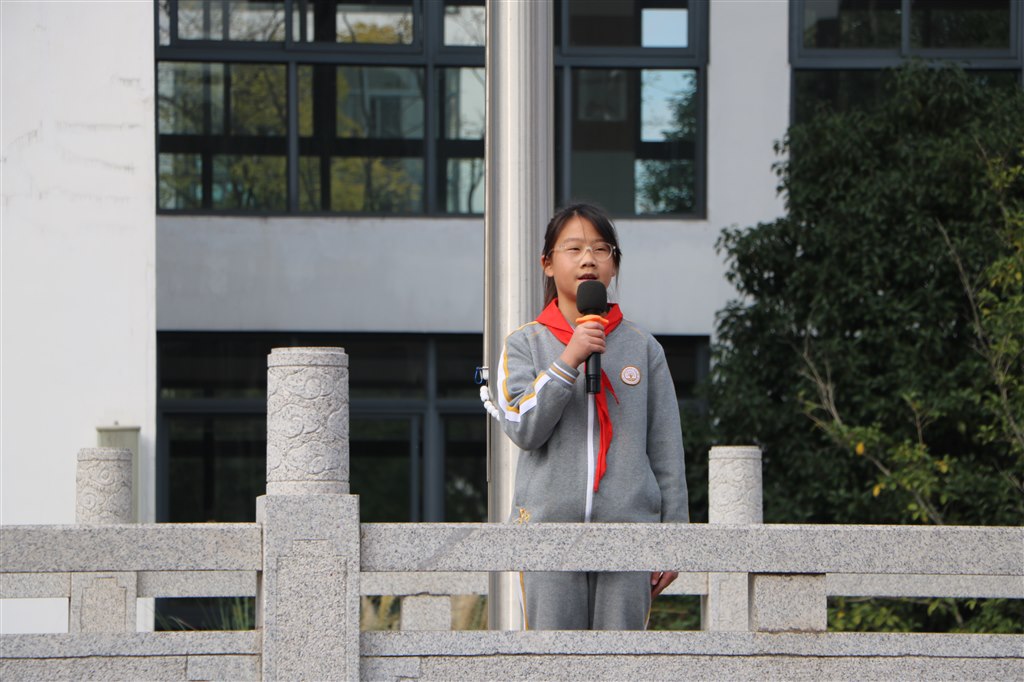 升旗仪式在庄严的国歌声中开启,升旗手刘梦琪进行了自我介绍,赢得师生们的热烈掌声。